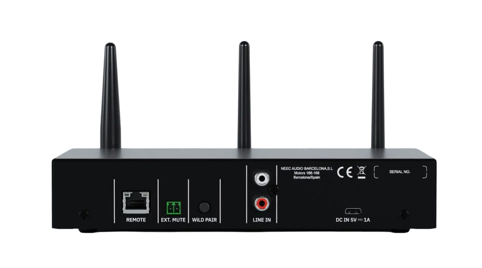 Параметры АЦП: 48 кГц/24 бит, динамический диапазон 96 дБ, частотный отклик в аудиодиапазоне 10 Гц - 15 кГц, сетевая задержка между передатчиком и приемником не более 26 мс. Радиопередатчик поддерживает один цифровой стереоканал для передачи несжатого аудиосигнала разрядностью 16 бит и частотой дискретизации 48 кГц. Источником аудиотрансляции может выступать либо внешний аналоговый прибор, подключаемый посредством линейного аудиовхода с разъемами 2RCA, либо мобильный гаджет, сопряженный беспроводным способом с помощью модуля Bluetooth.
