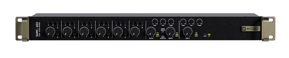 ECLER SAMI-603 – это шестиканальный аналоговый микшер-предусилитель, который используется в составе профессиональных систем озвучивания помещений разнообразного назначения, в том числе коммерческих, административных, учебных или медицинских. Устройство подходит для фонового музыкального вещания, ведения аудио-трансляций и сценических выступлений, караоке, подачи голосовых объявлений и т.д.