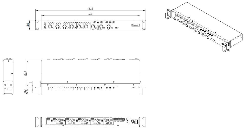 Микшер-предусилитель SAMI-603 изготовлен в металлическом корпусе, форм-фактор для установки в рэковые (19") стойки/шкафы/боксы. Габаритные размеры 483х44х154 мм (1U), вес 2 кг. Питание от стандартной сети AC 100-240 В, 50-60 Гц.
