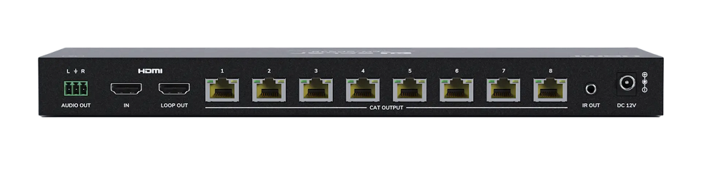 | Выходы | 1 – HDMI (проходной), тип А (розетка); 1 – стереоаудио, Euroblock 3-pin; 8 – витая пара, разъем RJ45 (розетка) |