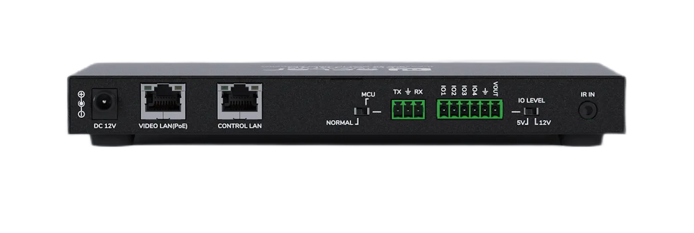 Доступно несколько вариантов дистанционного управления настройками и работой устройства. Стандартный и наиболее продуктивный через специализированное ПО, установленное на ПК, который подключается по независимому сетевому каналу (Control LAN) с разъемом RJ-45. Второй вариант управления через интерфейс RS-232, клеммный блок Euroblock 3-pin; с помощью ИК-сигнала и кабельного преобразователя (в комплекте) подключаемого к mini Jack. Отдельно стоит упомянуть релейный блок IO с разъемом Euroblock 6-pin.